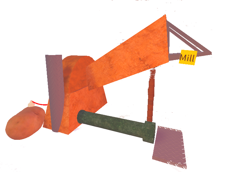 The mill allows you to mill down certain items into their milled form. It is canonically powered by kerosene and has a potato battery as its starter